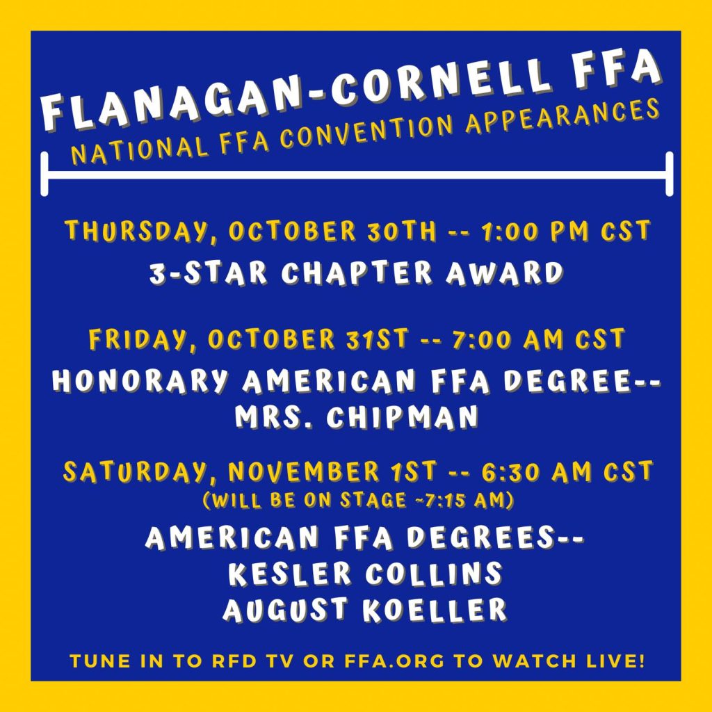 The Flanagan-Cornell FFA experienced an amazing week at the recent National FFA Convention and Expo in Indianapolis. Several group members received recognition, honors, and awards. Congratulations to all, and thank you for making us so proud of your accomplishments. Learn more here: https://www.facebook.com/share/p/17HjXugg4Q/